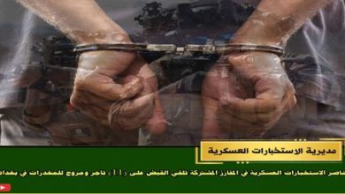 القت مفارز مديرية الاستخبارات العسكرية القبض على (11) تاجرا ومروجا للمخدرات في بغداد .وذكرت المديرية في بيان ،انه :” على…