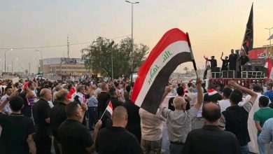 نحو 50 شخصاً يتقدمهم البرلماني عامر عبد الجبار، اليوم الاثنين، تظاهرة احتجاجية في ساحة النسور وسط بغداد، للمطالبة بإلغاء اتفاقية…