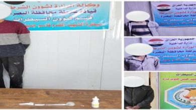 القت شرطة البصرة القبض على متهم بترويج المواد المخدرة وثلاثة مخالفين لقانون الاقامة .وذكر اعلام قيادة شرطة البصرة في بيان…