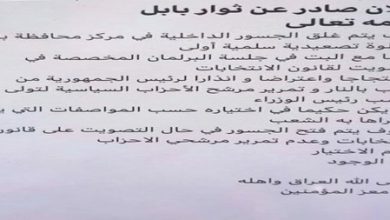 غلق جسور ومداخل مدينة الحلة واعلان بدء الاعتصام السلمي