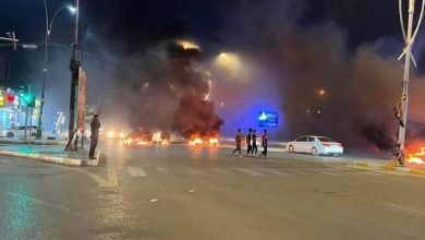 متظاهرون يقطعون تقاطع البهو بالإطارات المحترقة في الناصرية