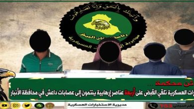 اعلنت مديرية الاستخبارات العسكرية ،اليوم الاثنين، القاء القبض على اربعة متهمين بالانتماء لداعش الارهابي في الانبار. وذكر بيان للمديرية :”ان…