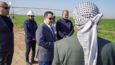 السوداني يزور حقلا لزراعة الحنطة تعتمد على منظومات الرش الحديثة جنوب بغداد