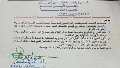 وزير الدفاع يوجه بحذف “صفحات ومواقع ممولة” للقادة والضباط