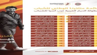 الافصاح عن قائمة منتخب الشباب للمشاركة في بطولة غرب آسيا