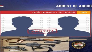 القت قوات الشرطة الاتحادية،اليوم الخميس، القبض على متهمين اثنين وضبط أسلحة غير مرخصة بحوزتهم في بغداد .وذكرت وزارة الداخلية في…