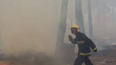 بالفديو…اخماد حريق في بساتين نخيل الحلة