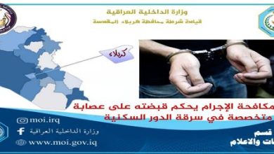 افاد مصدر امني ،اليوم السبت، عن القاء القبض على عصابة لسرقة المنازل والمحلات في كربلاء المقدسة. واوضح المصدر في حديث…