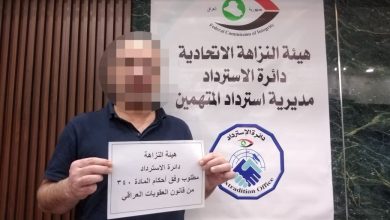 أعلنت هيئة النزاهة الاتحادية، اليوم الاثنين ، تسلم مديراً عامّاً أسبق في وزارة الصحَّة من السلطات في دولة الإمارات العربيَّة…
