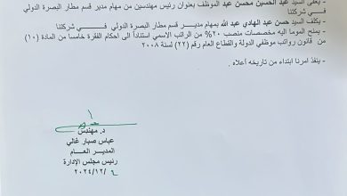 اعفاء مدير مطار البصرة من منصبه وتكليف بديلا عنه