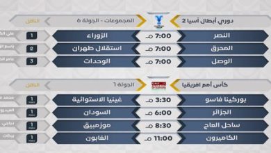 أبرز مباريات اليوم من دوري ابطال اسيا 2 وكأس امم افريقيا