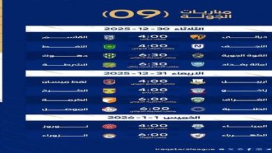 مباريات الجولة التاسعة من دوري نجوم العراق