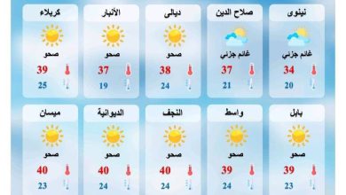 الانواء الجوية : الحرارة تلامس الاربعين خلال الايام المقبلة وفرصه لهطول الامطار