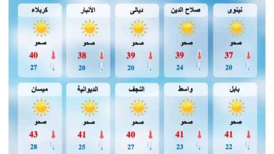 أعلنت هيئة الأنواء الجوية، اليوم السبت، حالة طقس العراق خلال الأيام المقبلة، فيما أشارت إلى أجواء صحو مع انخفاض بالحرارة.