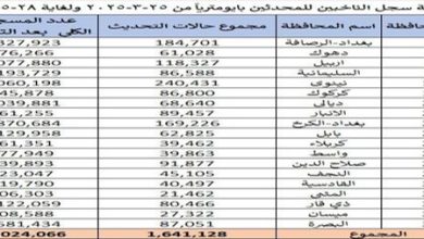 اعلنت المفوضية العليا المستقلة للانتخابات :” ان عدد المسجلين بايومتريا في العراق بلغ اكثر من 21 مليون ناخب “.واظهرت احصائية…