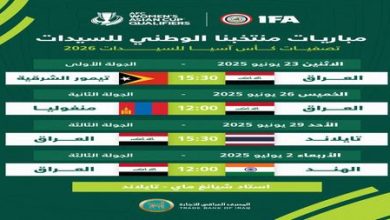 “وطن نيوز” تنشر جدولُ مباريات منتخبنا الوطنيّ للسيدات ضمن المجموعةِ الثانية لتصفيات كأس آسيا التي تقام فيِ مدينة شيانغ ماي…