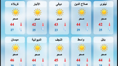 توقعت هيئة الأنواء الجوية، اليوم السبت، بأن يسجل العراق مستويات مرتفعة من الإشعاع الشمسي والحرارة تتجاوز الأربعين مئوية.