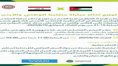 تذاكر مباراة منتخبنا الوطني ونظيره الأردني ستوزع مجاناً