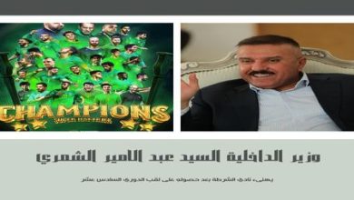 وزير الداخلية يهنئ نادي الشرطة لتتويجه بلقب دوري النجوم