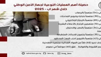 اعلن جهاز الأمن الوطني عن القاء القبض على 54 متهماً بالإرهاب خلال شهر آب.واوضح الجهاز في بيان” ان (٥٤) متهماً…