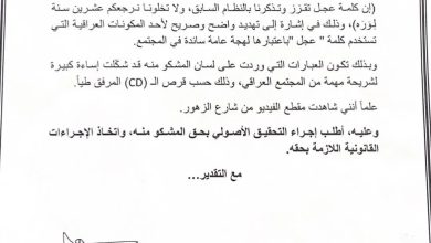قدّم محامٍ عراقي، يوم الثلاثاء، إخباراً رسمياً إلى قاضي محكمة تحقيق تكريت، بحق المحلل السياسي “عماد المسافر” بتهمة الإساءة لأحد…