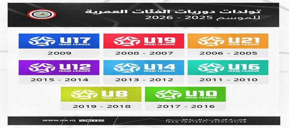 اعتمد اتحاد الكرة العراقي ، لائحة ” السن القانوني ” لدوريات الفئات العمرية لاندية دوري نجوم العراق والدوري الممتاز ، للموسم الكروي 2025/ 2026 .