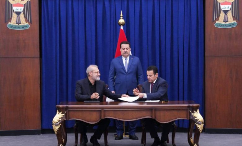 كما رعى السوداني توقيع مذكرة تفاهم امنية مشتركة بين مستشار الامن القومي العراقي، ولاريجاني تتعلق بالتنسيق الامني للحدود المشتركة بين البلدين.