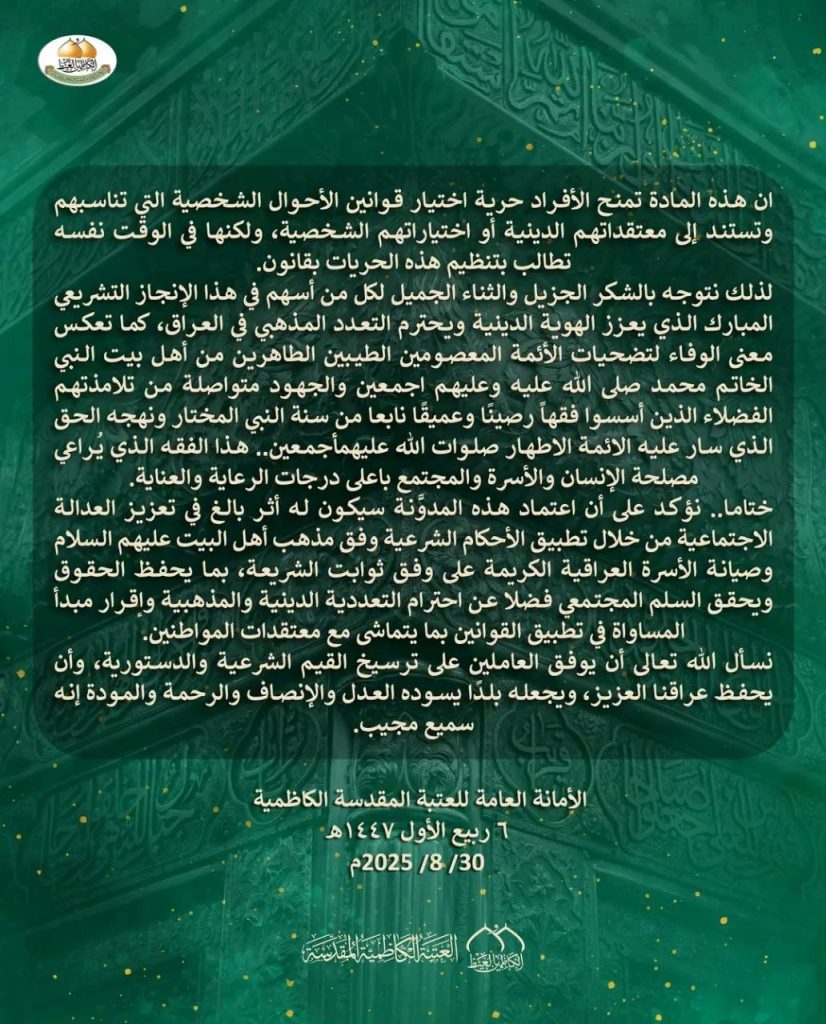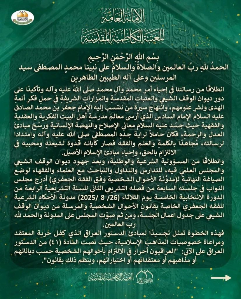 الرئيسية/اخبـار العراق/العتبة الكاظمية تصدر بيانًا بشأن تصويت البرلمان على “المدونة الجعفرية”: إنجاز تشريعي مبارك اخبـار العراق العتبة الكاظمية تصدر بيانًا بشأن تصويت البرلمان على “المدونة الجعفرية”: إنجاز تشريعي مبارك 2025-08-30 60 2025-08-30 60 شاركها فيسبوك X لينكدإن Tumblr بينتيريست Reddit VKontakte Odnoklassniki Pocket مشاركة عبر البريد طباعة