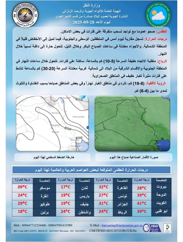 طقس العراق .. دفء يلتحف أواخر أيلول بأجواء تميل للاعتدال