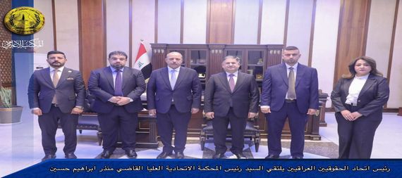 بحث رئيس اتحاد الحقوقيين العراقيين قاسم طعمة جودة، برفقة نائبه آزر صادق الهيتي وعدد من أعضاء المكتب التنفيذي، مع رئيس المحكمة الاتحادية العليا القاضي منذر إبراهيم حسين، سبل تعزيز التعاون بين المؤسسات القانونية، وذلك خلال لقاء عقد في مقر المحكمة الاتحادية العليا في بغداد.