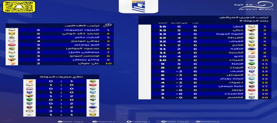 جدول ترتيب الأندية العراقية بعد ختام الجولة السادسة