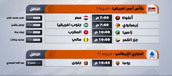 لائحة بمباريات اليوم في كأس الامم الافريقية