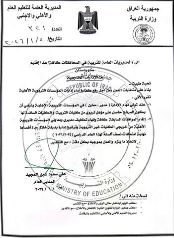 الرئيسية/اخبـار العراق/التربية تعتمد ضوابط جديدة لإدارة المؤسسات التربوية الأهلية اخبـار العراق التربية تعتمد ضوابط جديدة لإدارة المؤسسات التربوية الأهلية منذ 6 أيام 65 منذ 6 أيام 65 شاركها فيسبوك X لينكدإن Tumblr بينتيريست Reddit VKontakte Odnoklassniki Pocket مشاركة عبر البريد طباعة