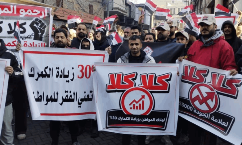 تظاهرة لتجار بغداد احتجاجا على رفع الرسوم