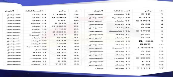 وذكرت مديرية المرور العامة في بيان انه :” سيتم اجراء مزايدة علنية لبيع الارقام المميزة في مقر المديرية الكائن قرب ملعب الشعب الدولي ، يوم الاثنين الموافق 2026/2/2 ،في تمام الساعة التاسعة صباحا”.