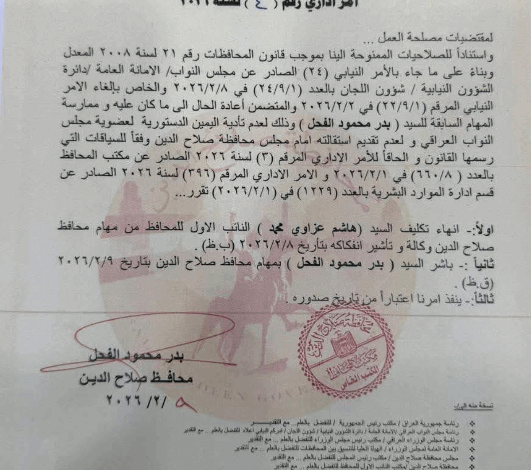فقط في العراق … محافظ يؤدي اليمين كنائب ويعود لمزاولة منصبه كمحافظ