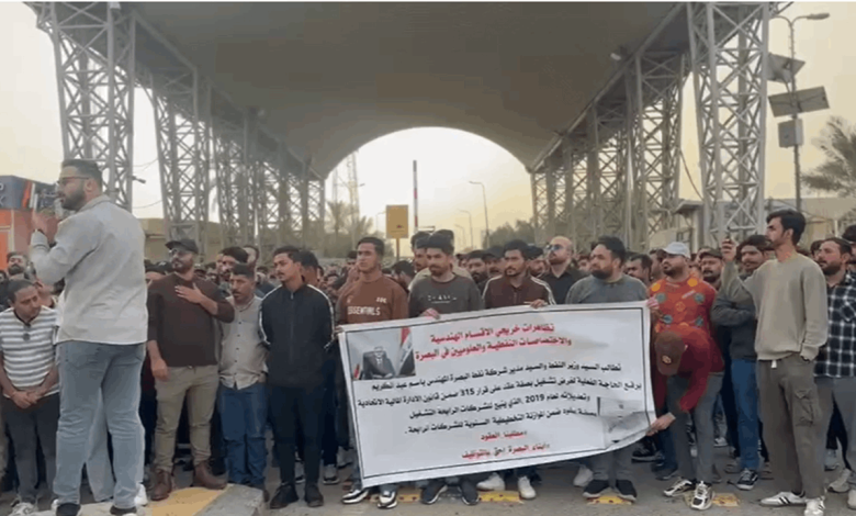 خريجون من 3 تخصصات يتظاهرون امام نفط البصرة