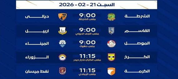 لائحة بمباريات اليوم الثاني من الجولة 19 لدوري نجوم العراق