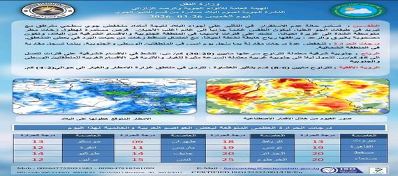 واشارت الى ” ان درجات الحرارة تنخفض عدة درجات مقارنة بما سُجل يوم أمس في المنطقتين الوسطى والجنوبية، بينما تكون مقاربة في المنطقة الشمالية.