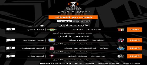لائحة بمباريات ذهاب ربع نهائي الدوري الأوروبي لكرة القدم والتي تنطلق مساء اليوم .