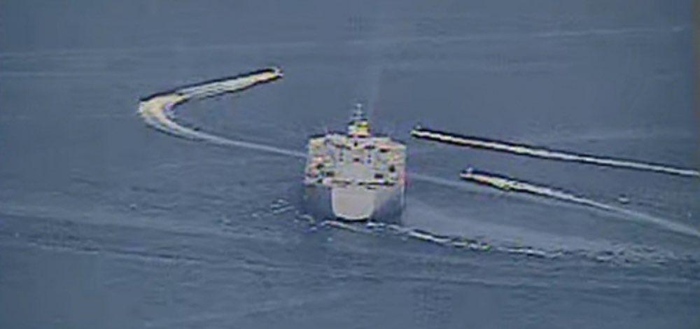 9 امتار تفصلهما عن الاصطدام.. قوارب ايرانية تقترب من سفن اميركية في الخليج (صور)