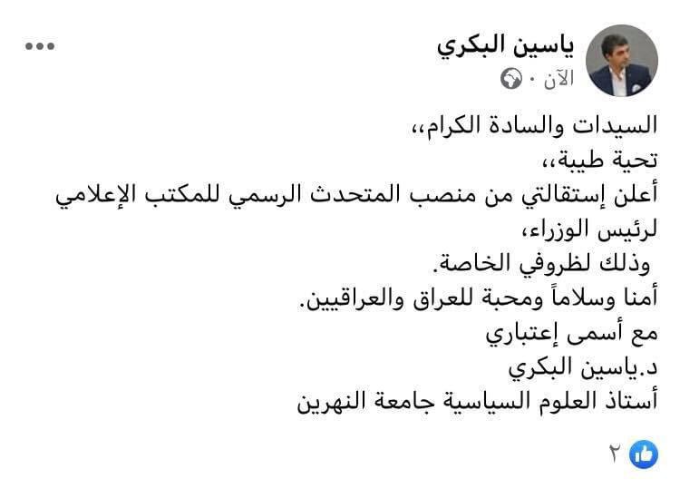 الرئيسية/اخبـار العراق/بعد يومين على تعيينه .. البكري يعلن استقالته من منصب المتحدث الرسمي للمكتب الإعلامي لرئيس الوزراء اخبـار العراق أخر الأخبار بعد يومين على تعيينه .. البكري يعلن استقالته من منصب المتحدث الرسمي للمكتب الإعلامي لرئيس الوزراء 2020-07-06 373 2020-07-06 373 شاركها فيسبوك X لينكدإن Tumblr بينتيريست Reddit VKontakte Odnoklassniki Pocket مشاركة عبر البريد طباعة