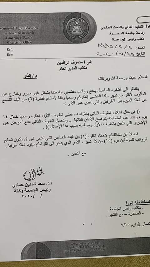 الرئيسية/اخبـار العراق/جامعة البصرة تنذر مصرف الرافدين لتاخر رواتب منتسبيها اخبـار العراق أخر الأخبار جامعة البصرة تنذر مصرف الرافدين لتاخر رواتب منتسبيها 2020-07-16 275 2020-07-16 275 شاركها فيسبوك X لينكدإن Tumblr بينتيريست Reddit VKontakte Odnoklassniki Pocket مشاركة عبر البريد طباعة