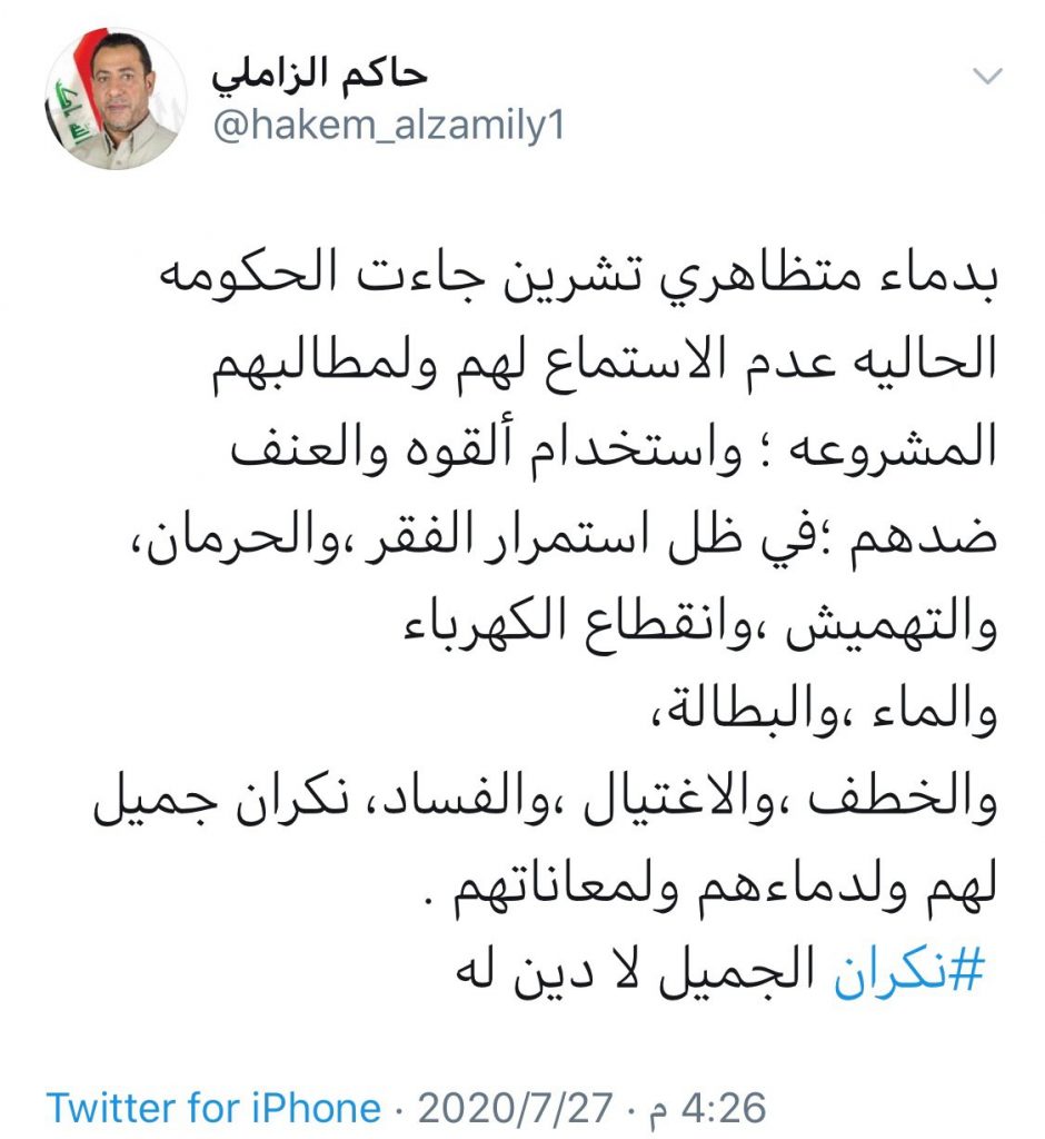 الرئيسية/اخبـار العراق/حاكم الزاملي: الحكومة جاءت بدماء المتظاهرين.. نكران الجميل لا دين له اخبـار العراق أخر الأخبار حاكم الزاملي: الحكومة جاءت بدماء المتظاهرين.. نكران الجميل لا دين له 2020-07-27 483 2020-07-27 483 شاركها فيسبوك X لينكدإن Tumblr بينتيريست Reddit VKontakte Odnoklassniki Pocket مشاركة عبر البريد طباعة