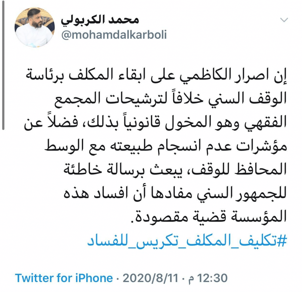 الرئيسية/اخبـار العراق/الكربولي: اصرار الكاظمي على ابقاء المكلف بالوقف السني يبعث برسالة خاطئة للجمهور السني اخبـار العراق أخر الأخبار الكربولي: اصرار الكاظمي على ابقاء المكلف بالوقف السني يبعث برسالة خاطئة للجمهور السني 2020-08-11 382 2020-08-11 382 شاركها فيسبوك X لينكدإن Tumblr بينتيريست Reddit VKontakte Odnoklassniki Pocket مشاركة عبر البريد طباعة