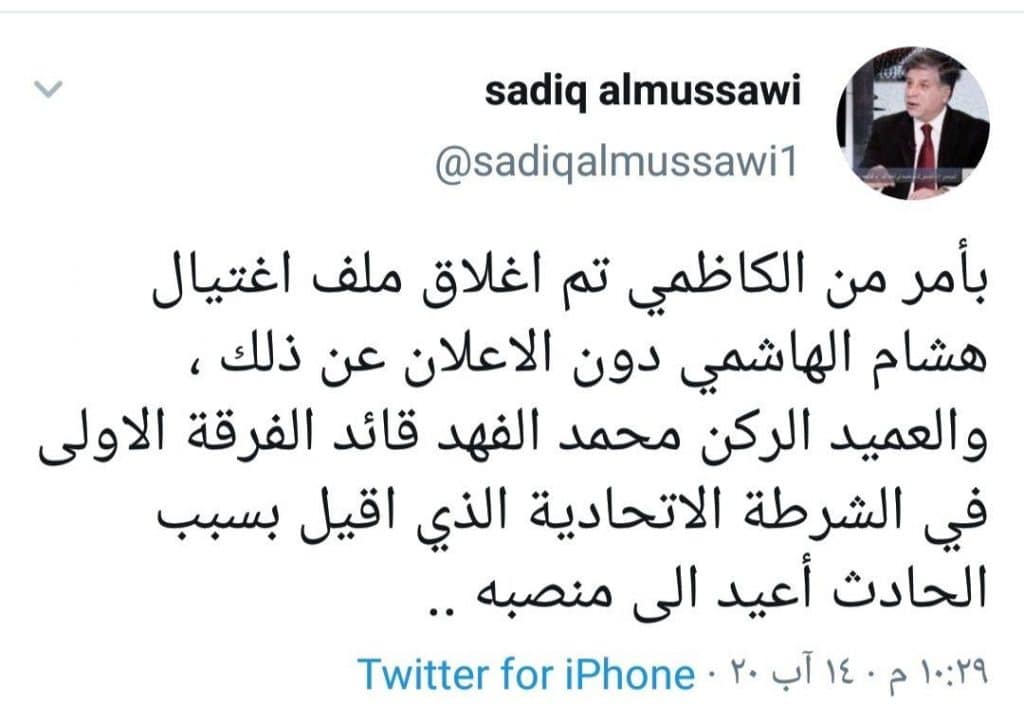 الرئيسية/اخبـار العراق/بأمر من الكاظمي.. إغلاق ملف اغتيال هشام الهاشمي واعادة المسؤول الامني الذي اقيل بسبب الحادثة!! اخبـار العراق بأمر من الكاظمي.. إغلاق ملف اغتيال هشام الهاشمي واعادة المسؤول الامني الذي اقيل بسبب الحادثة!! 2020-08-15 945 2020-08-15 945 شاركها فيسبوك X لينكدإن Tumblr بينتيريست Reddit VKontakte Odnoklassniki Pocket مشاركة عبر البريد طباعة