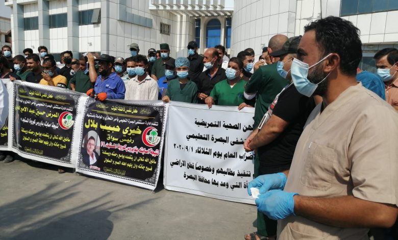 وقال مراسلنا، ان “منتسبي مستشفى البصرة التعليمي (الوبائي) نظموا اعتصاماً مفتوحاً وإضرابا جزئياً عن العمل احتجاجاً على تجاهل الجهات المسؤولة مطالبهم المتمثلة بتوزيع قطع الأراضي السكنية ورفع رواتب عمال الخدمة البالغة 180 ألف دينار”.
