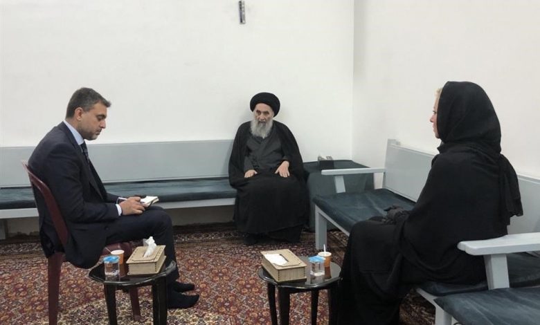 وجاء في البيان ما يلي: “استقبل سماحة السيد السيستاني (دام ظله) قبل ظهر اليوم جينين هينيس- بلاسخارت الممثلة الخاصة للأمين العام للأمم المتحدة في العراق، وأشار سماحته خلال اللقاء الى مواقفه في عدد من القضايا المهمة وهي: