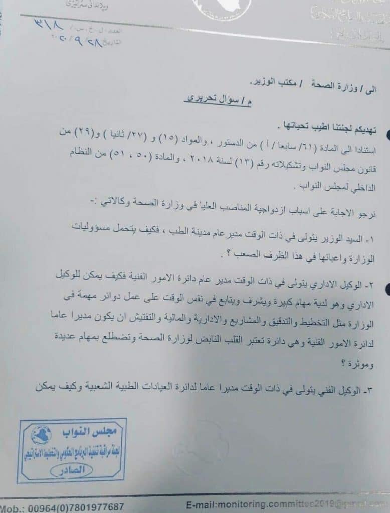 الرئيسية/اخبـار العراق/الوزير يشغل منصبين.. ازدواج بالمناصب في وزارة الصحة (وثائق) اخبـار العراق الوزير يشغل منصبين.. ازدواج بالمناصب في وزارة الصحة (وثائق) 2020-10-20 422 2020-10-20 422 شاركها فيسبوك X لينكدإن Tumblr بينتيريست Reddit VKontakte Odnoklassniki Pocket مشاركة عبر البريد طباعة