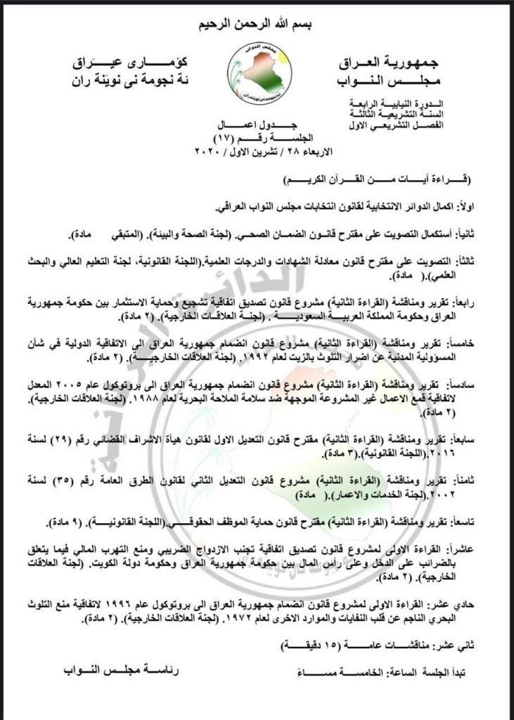 الرئيسية/اخبـار العراق/بالوثيقة.. جدول اعمال جلسة البرلمان اليوم الأربعاء اخبـار العراق أخر الأخبار بالوثيقة.. جدول اعمال جلسة البرلمان اليوم الأربعاء 2020-10-28 404 2020-10-28 404 شاركها فيسبوك X لينكدإن Tumblr بينتيريست Reddit VKontakte Odnoklassniki Pocket مشاركة عبر البريد طباعة